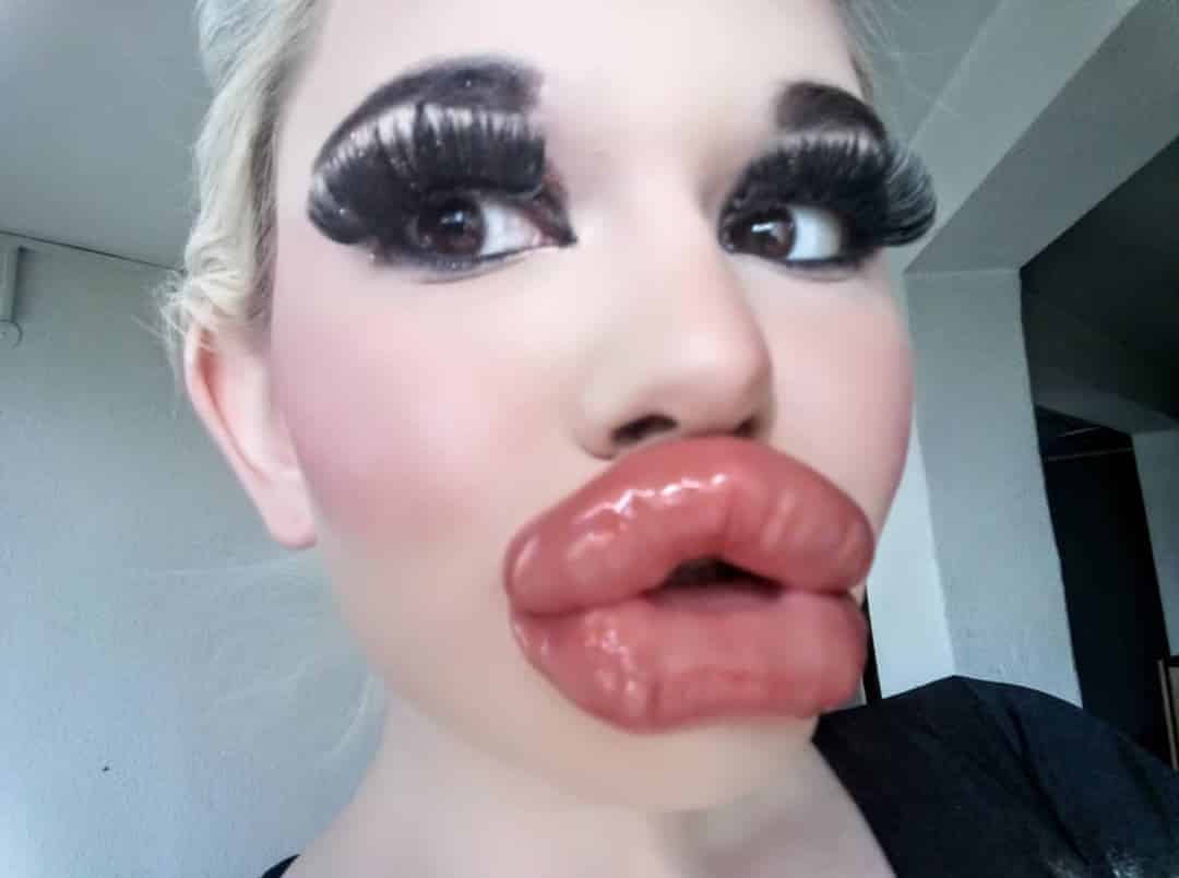 Haar mond lijkt op een ontplofte anus. 2 in 1 BJ's |