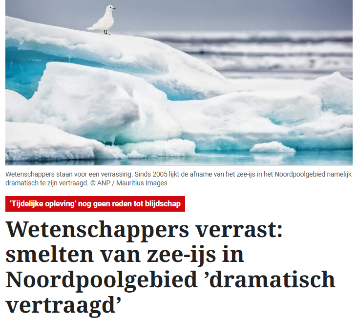 Meer zorgwekkend nieuws: https://www.rtl.nl/nieuws/klimaat/artikel/5524172/risico-op-stilvallen-golfstroom-amoc-zeer-groot-als-co2-uitstoot Een samenvatting: Als de uitstoot van broeikasgassen hoog blijft, is de kans zeer groot dat de Atlantische Golfstroom AMOC na het jaar 2100 stilvalt. Die kans is meer dan 70 procent, blijkt uit een nieuwe wetenschappelijke studie. Dat kan in Nederland tot drogere zomers en koudere winters leiden en tot lagere opbrengsten van gewassen. De eerste effecten kunnen al over 10 tot 20 jaar merkbaar worden. Niet warmer, maar juist kouder! Ook niet best en wederom zeer zorgwekkend !!1!!!!1!!. Winter is coming ![]() |
