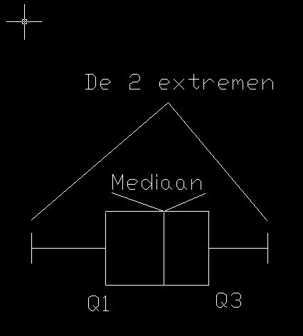 quote: oooh, dat is iets simpels uit de statestiek, heeft te maken met mediaan, eerste quartiel, derde quartiel en de twee uitersten, je hebt er twee soorten in, ene met uitschieters en ene zonder, klein voorbeeld: een reeks getallen: 12 20 19 22 26 23 17 18 10 15 21 Geordend geeft dat: 10 12 15 17 18 19 20 21 22 23 26 Hier is de mediaan 19 Q1, of het eerste quartiel is gelegen op de mediaan van de eerste rij, zonder de mediaan van de hele pak, 15 Q3, of de mediaan van de rij getallen na de mediaan, is hier 22 Dus ga je een boxplot (met uitschieters) hebben die er zo uitziet: ![]() met dus Q1 gelijk aan 15 Q3 gelijk aan 22 Mediaan gelijk aan 19 De twee uitersten respectievelijk 10 en 26 dat was één van de gemakkelijkste vragen op ons examen wiskunde vorig jaar. Having heard the voice of Morrigan I am uilleannpiping my way through this world, powered by Guinness |